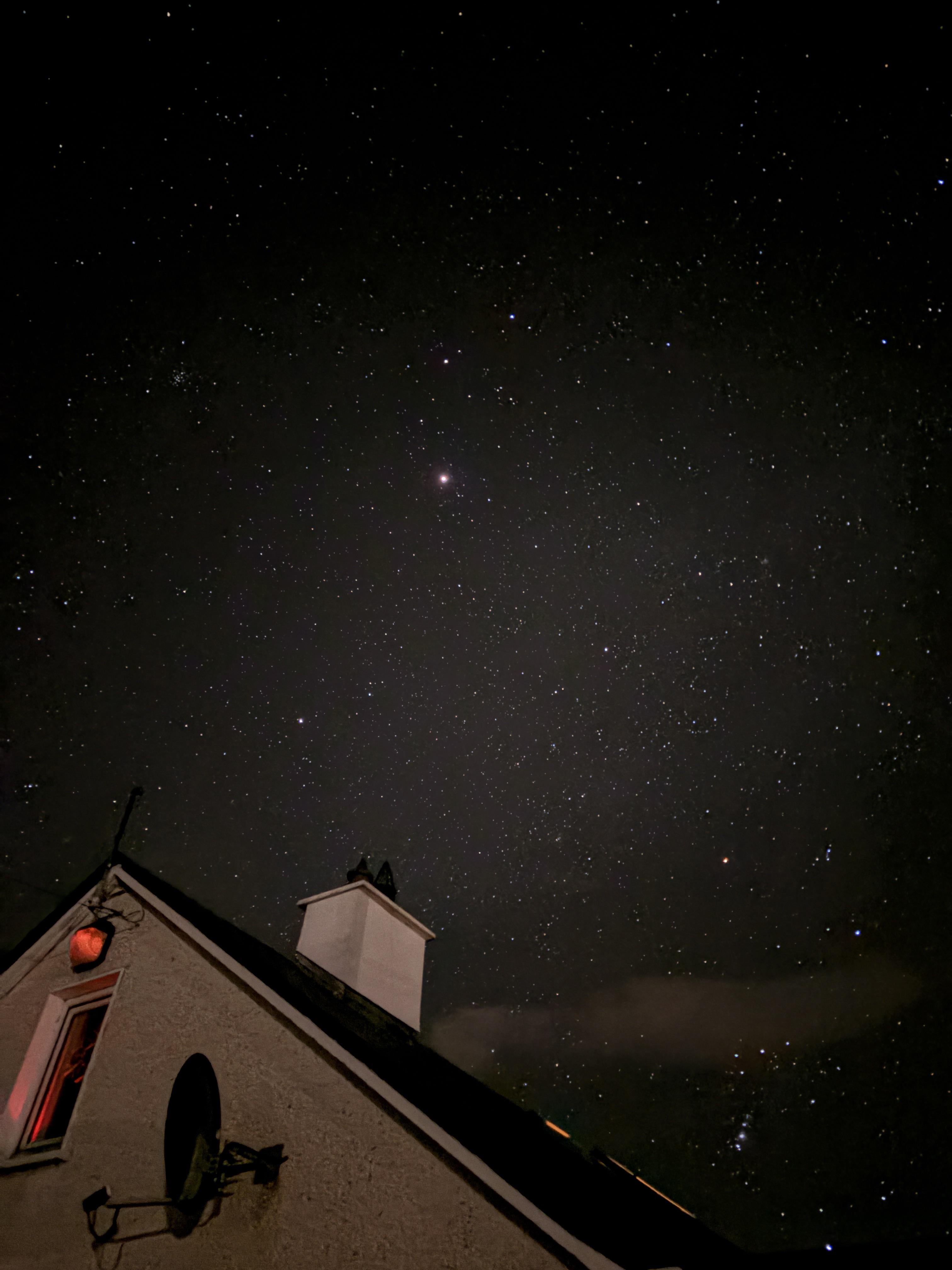 1. Lovely pic of the night sky. Orion bottom left and I assume that’s Jupiter in the centre?