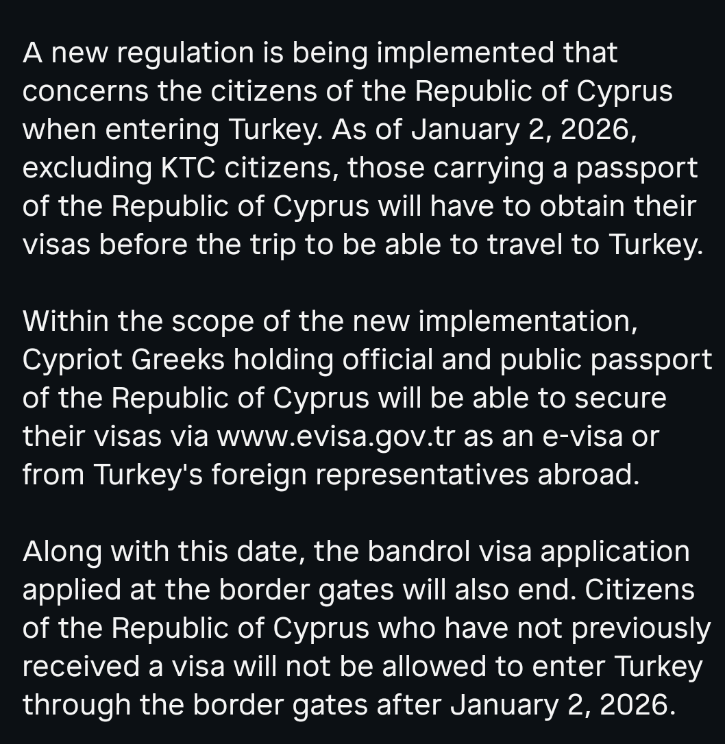 Seems Cypriots ( Greek ) will require a visa to visit Turkey from Jan 2026.