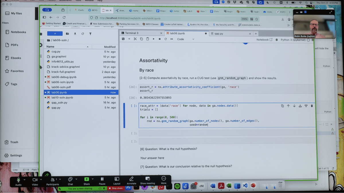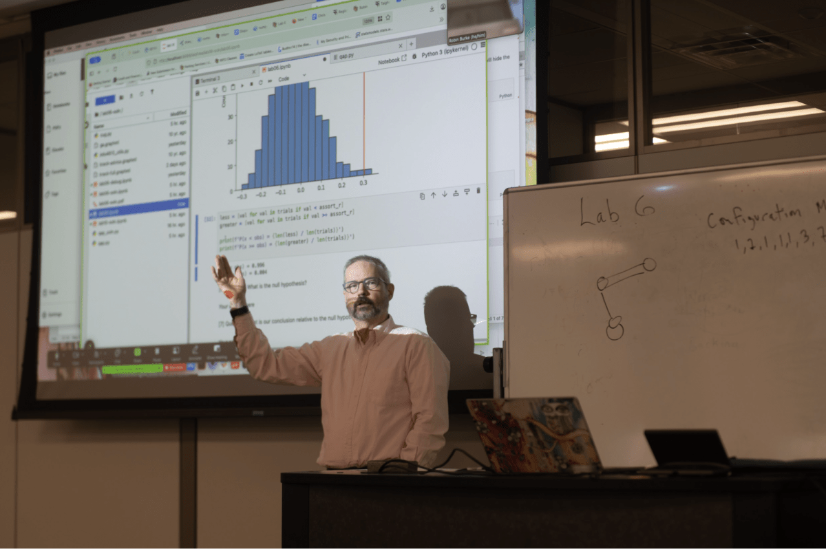 Professor Robin Burke gives course instruction on modeling racial segregation with code in AI experimentation class on Oct. 23. (Myra Kirk/CU News Corps)