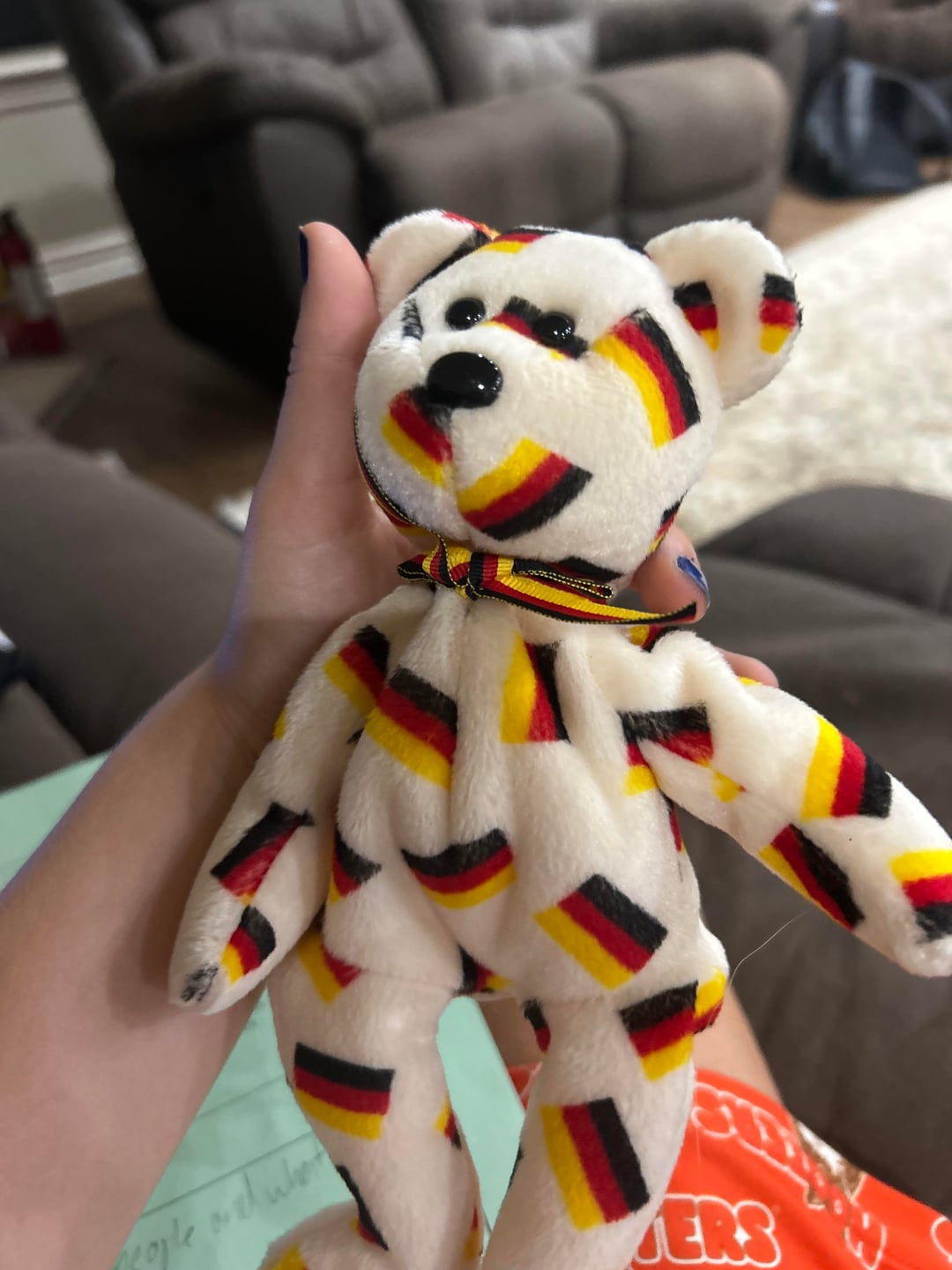 But I guess I am too much of a conservative to like the way a teddy bear of all things is plastered with the national flag, the symbol of national unity **and democracy** in Germany, being used as a cheap paint job on a cheap toy. It cheapens the symbol in my opinion.