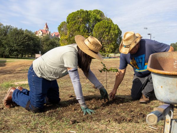 At the last SERVE 1 Day of the semester, volunteers planted another tree at the entrance of the Common Grounds on Nov. 22. (Dalia Zamora / Hilltop Views)
