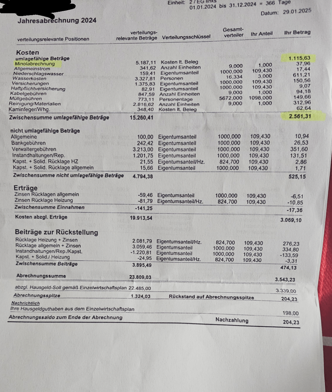 Hello there, im a tax assistant, I see these daily and i can confidently say i have no clue either. Hausgeldabrechnungen have no business being this complicated