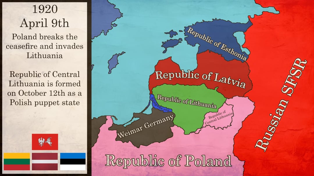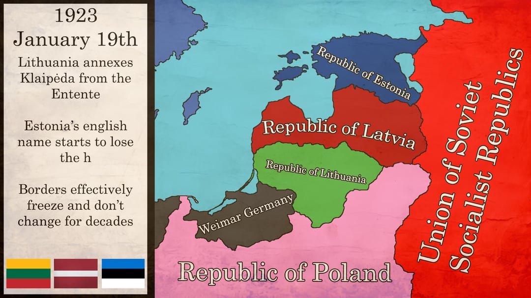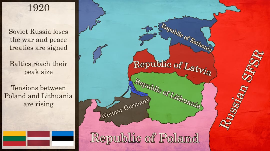 I created these maps, marking the most important territorial changes in the Baltic states. Basically, the interwar period in Latvia and Estonia was peaceful while we were fighting a war with the Poles. Due to conflicts and conflicting territorial ambitions, the maps are not accurate in the early years.