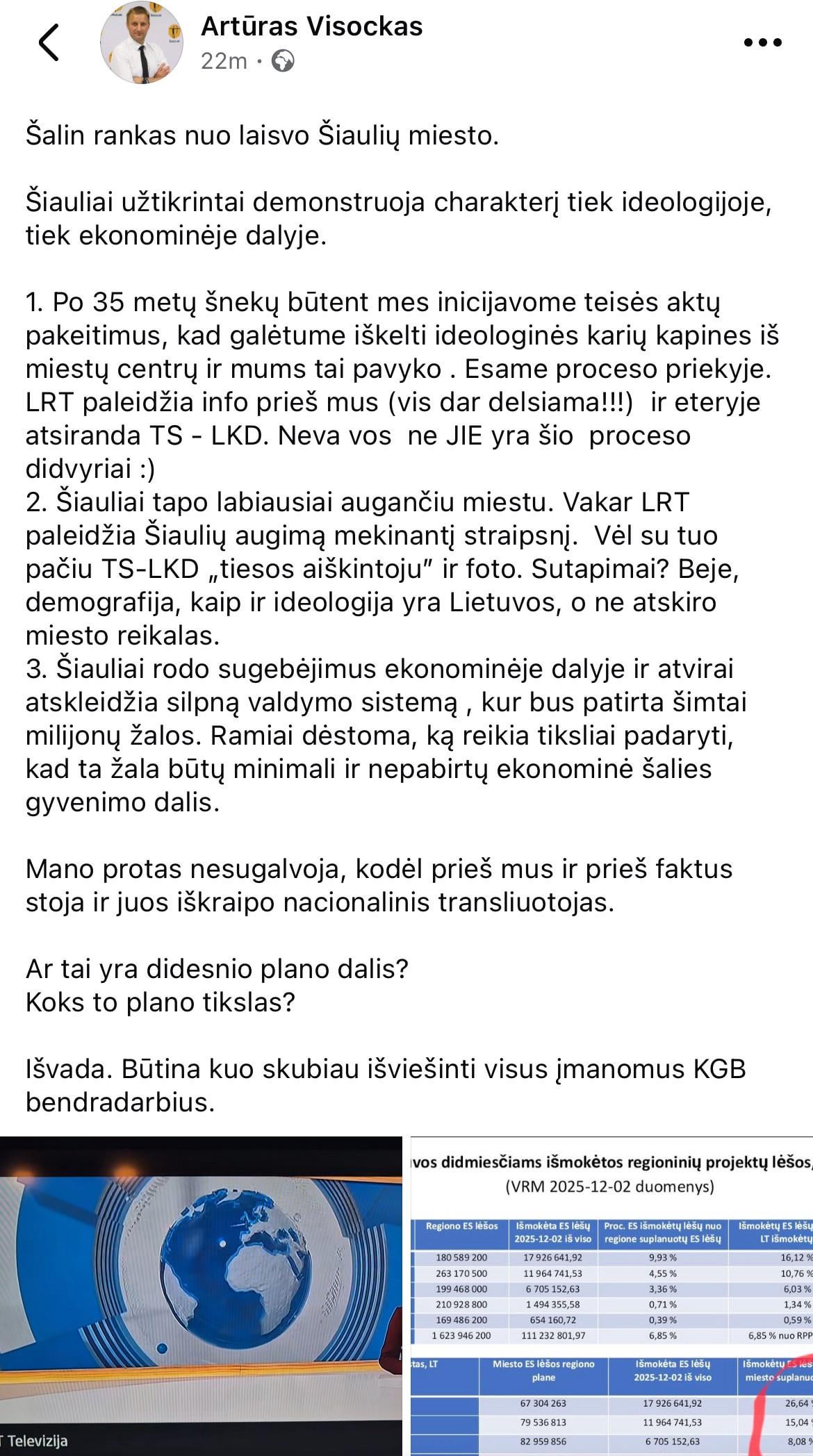 What are your thoughts on this character? He supports Zemaitaitis, he used to support all kinds of livers, puidouks and other soles, now he regularly pisses around that the protests were unnecessary and LRT is evil. Maybe too little attention to this character? Suspicious duo, no matter what. How do the people of Šiauli themselves value him?