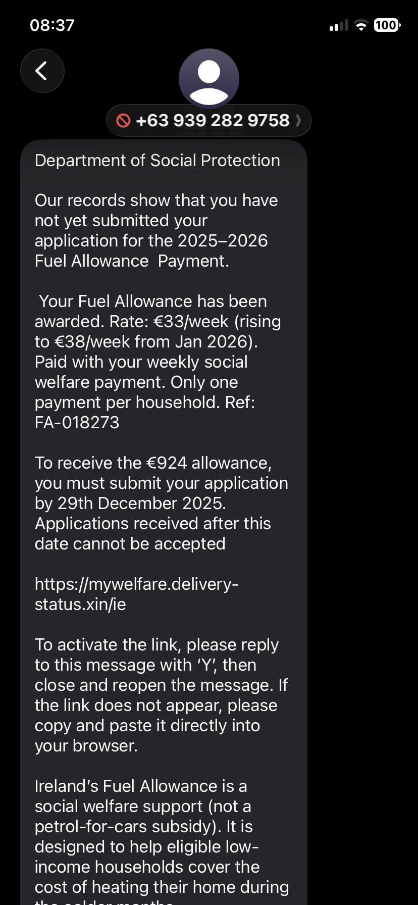Jesus this is vicious, it really looks real and can anyone imagine their nanny getting this and replying. Scary stuff, thanks for the heads up, hopefully many will see this and be alert especially to their elderly relatives.