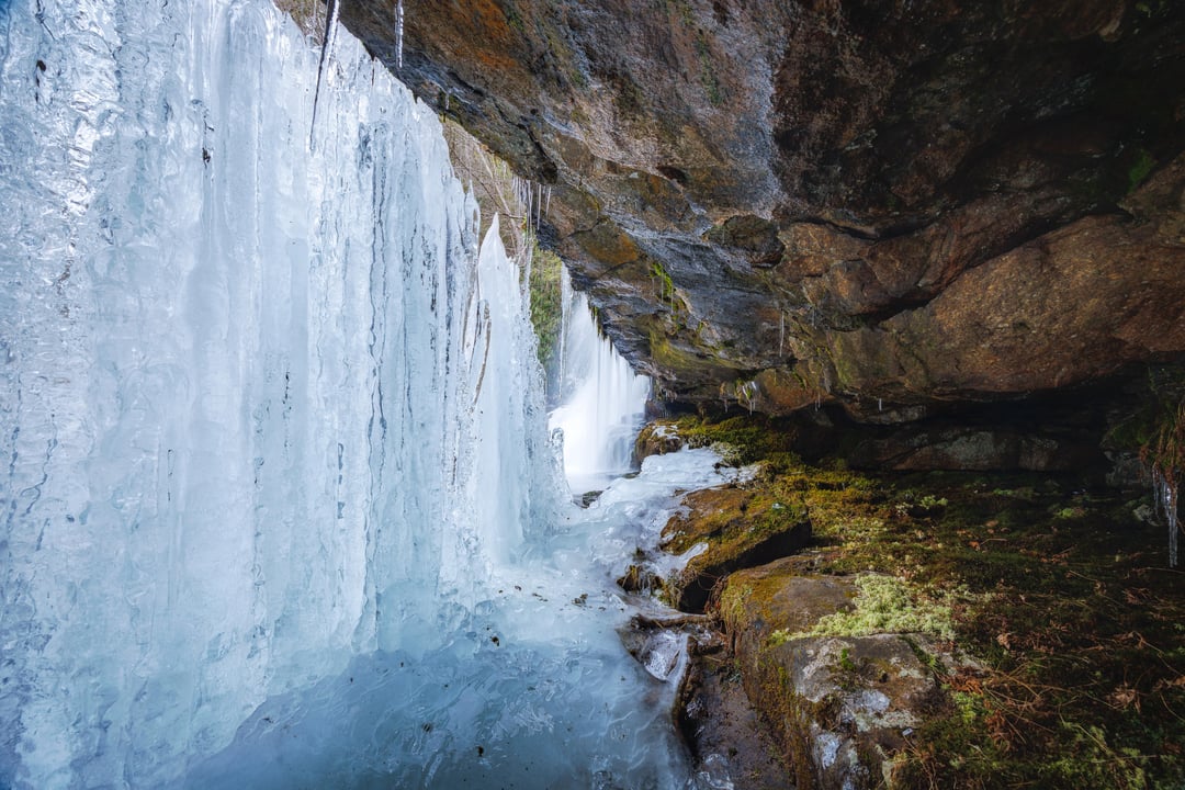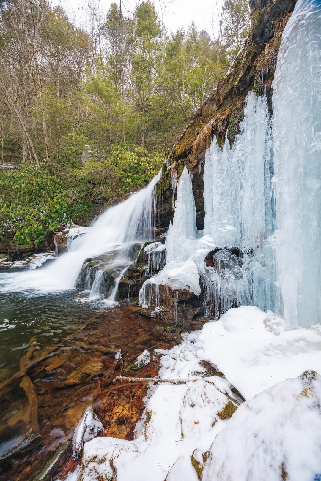 Columns of ice forming a nice cave. Northeast Pennsylvania, USA,