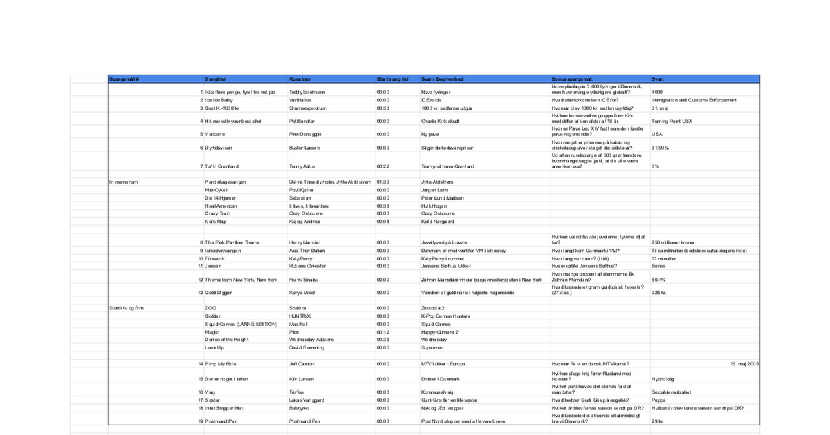 Nytårsmusikquiz med året der gik 2025 – til fri afbenyttelse