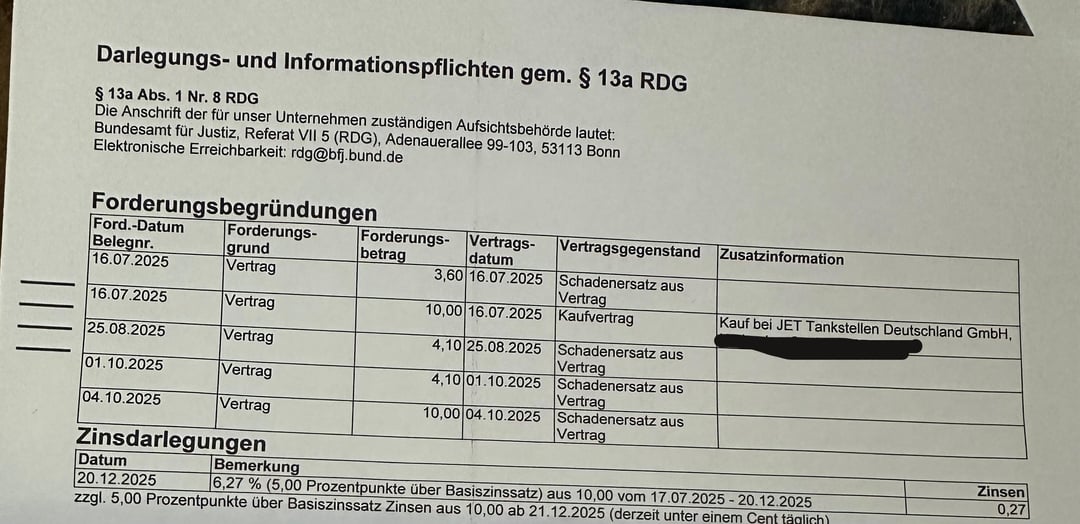 I have written them emails asking them to provide proof / explanations, and I have tried to contact them by phone, but nobody answers ever. It seems strange to me because I continue to go to that JET station and pay without any problems. I have never received a letter directly from JET; instead, it came directly from this Inkasso company with this amount, including a reminder fee (Mahnung), which seems exaggeratedly high to me.