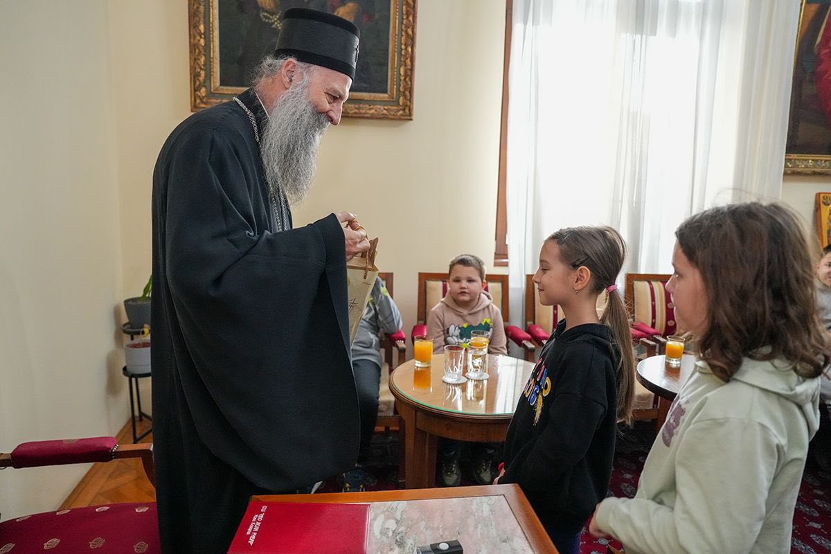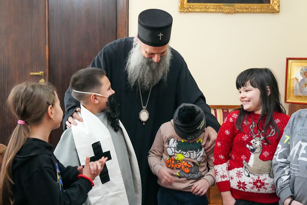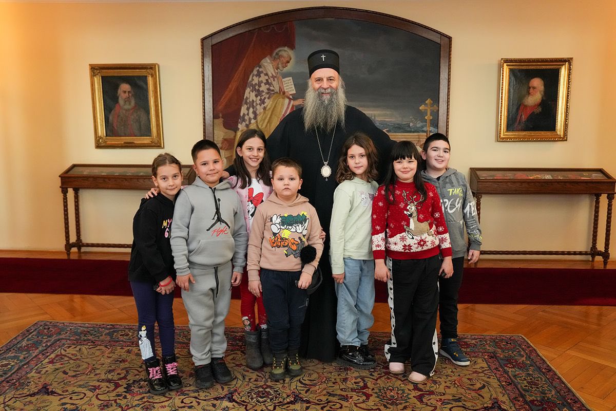 Patriarch Porfirije of Serbia welcomed a group of schoolchildren from the satellite primary school in Novi Kozarci, near Kikinda, to the Patriarchal Residence in Belgrade on December 30, 2025.