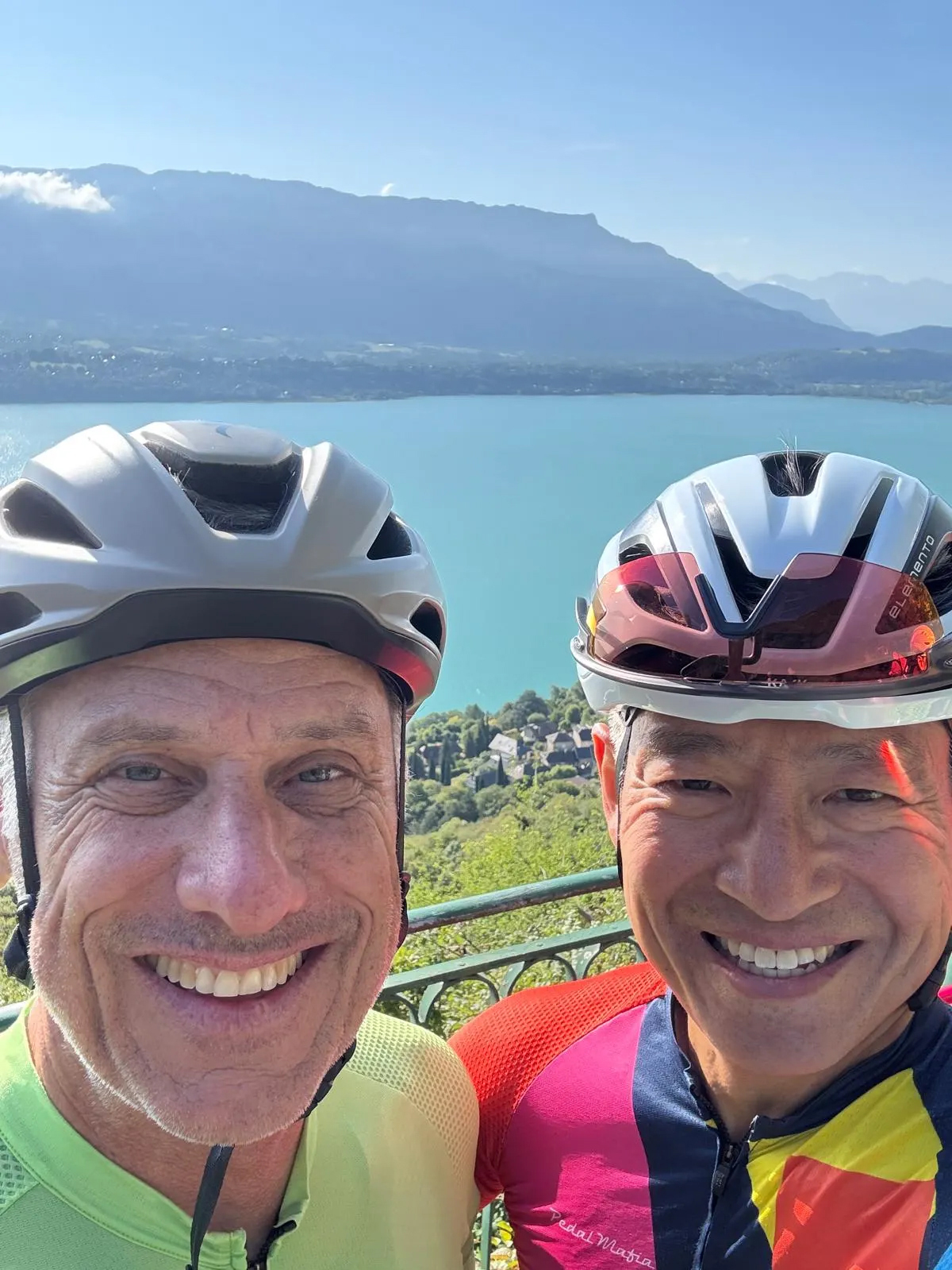 Riding around Lac du Bourget with Charles and Jarrett. Photo by Peter Abraham