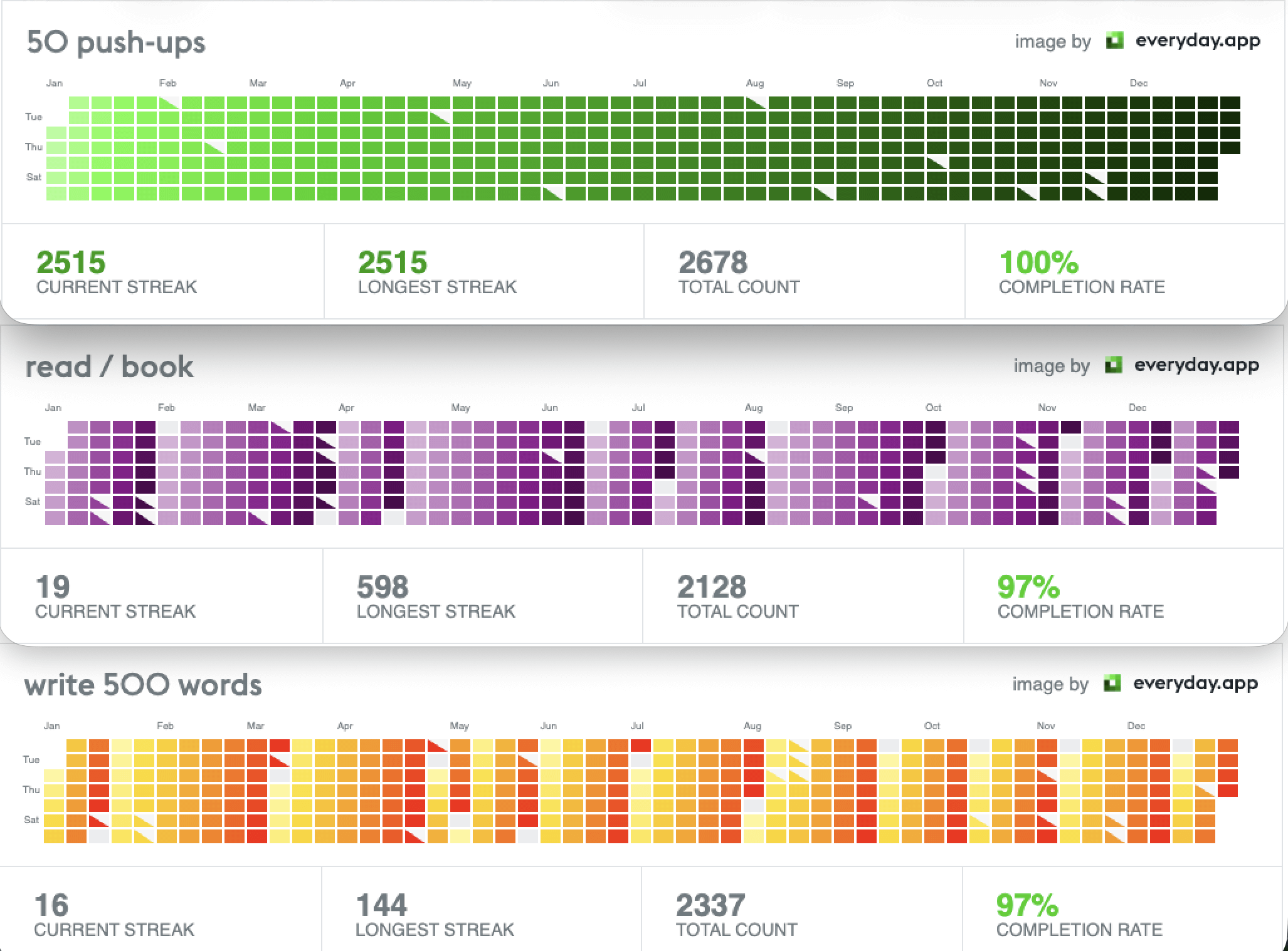 [OC] These are the top 3 habits (push-ups, reading and writing) I have been more consistent at in 2025! Posted by mezod