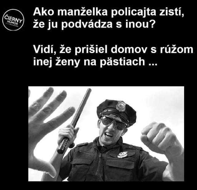 5. Bohuzial poznam zenu ktoru roky mlatil jej muz policajt. Ked zavolala policiu lebo sa bala o zivot tak prisli kolegovia policajti, dali si kavicku s kolegom a isli zas prec.