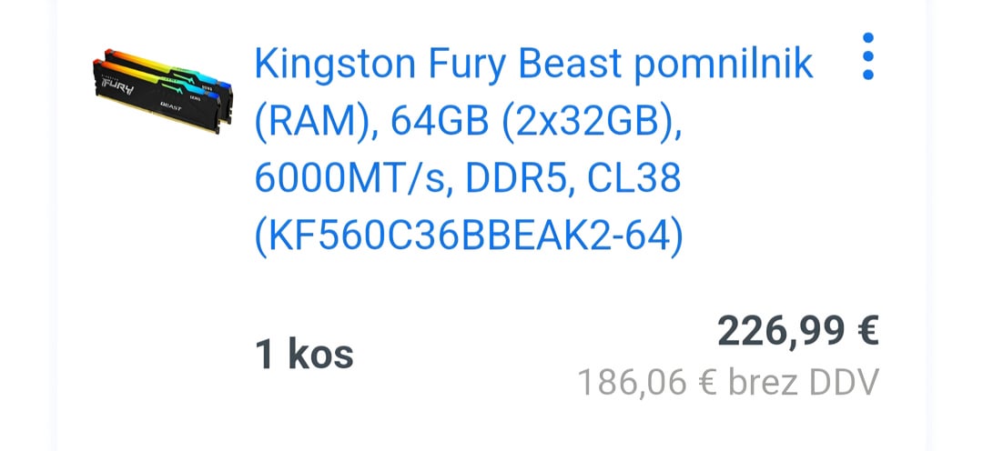 KINGSTON FURY Beast RGB 32GB (2×16) 6000 CL30 pol leta nazaj 127€ danes 570€… kupil sem nov pc v pravem času 😁