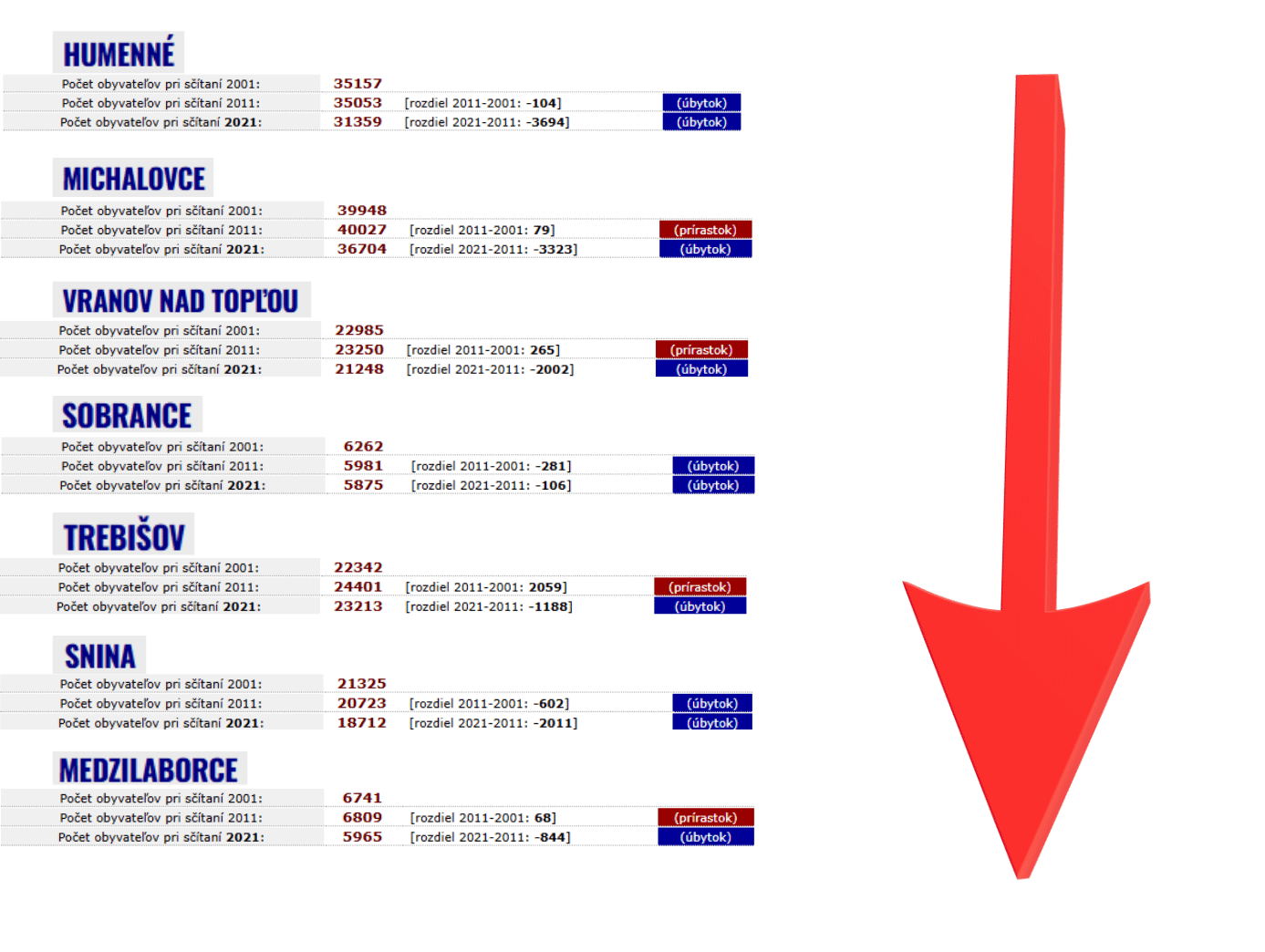 Pekne sa to dá pozrieť tu za celé Slovensko. 21 miest na Slovensku má prírastok obyvateľstva, 120 miest má úbytok (alebo stagnáciu).