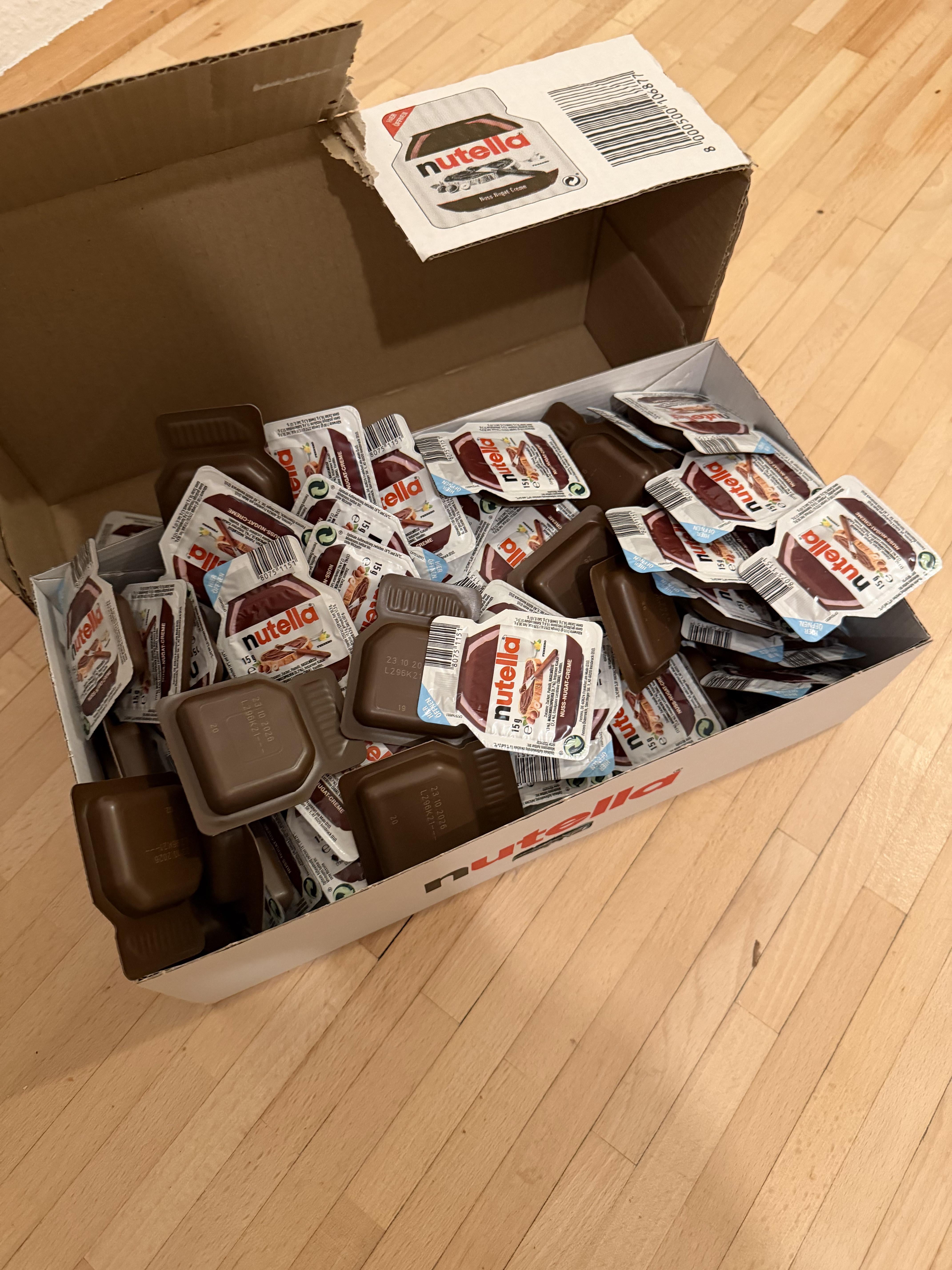 ich hab die auch gern. eine portion passt gut für zB 1stk. croissant. schmeckt dann gut nach nutella, aber ist nicht so überladen voll wie wenn ma aus dem kiloglas schöpfen würd.