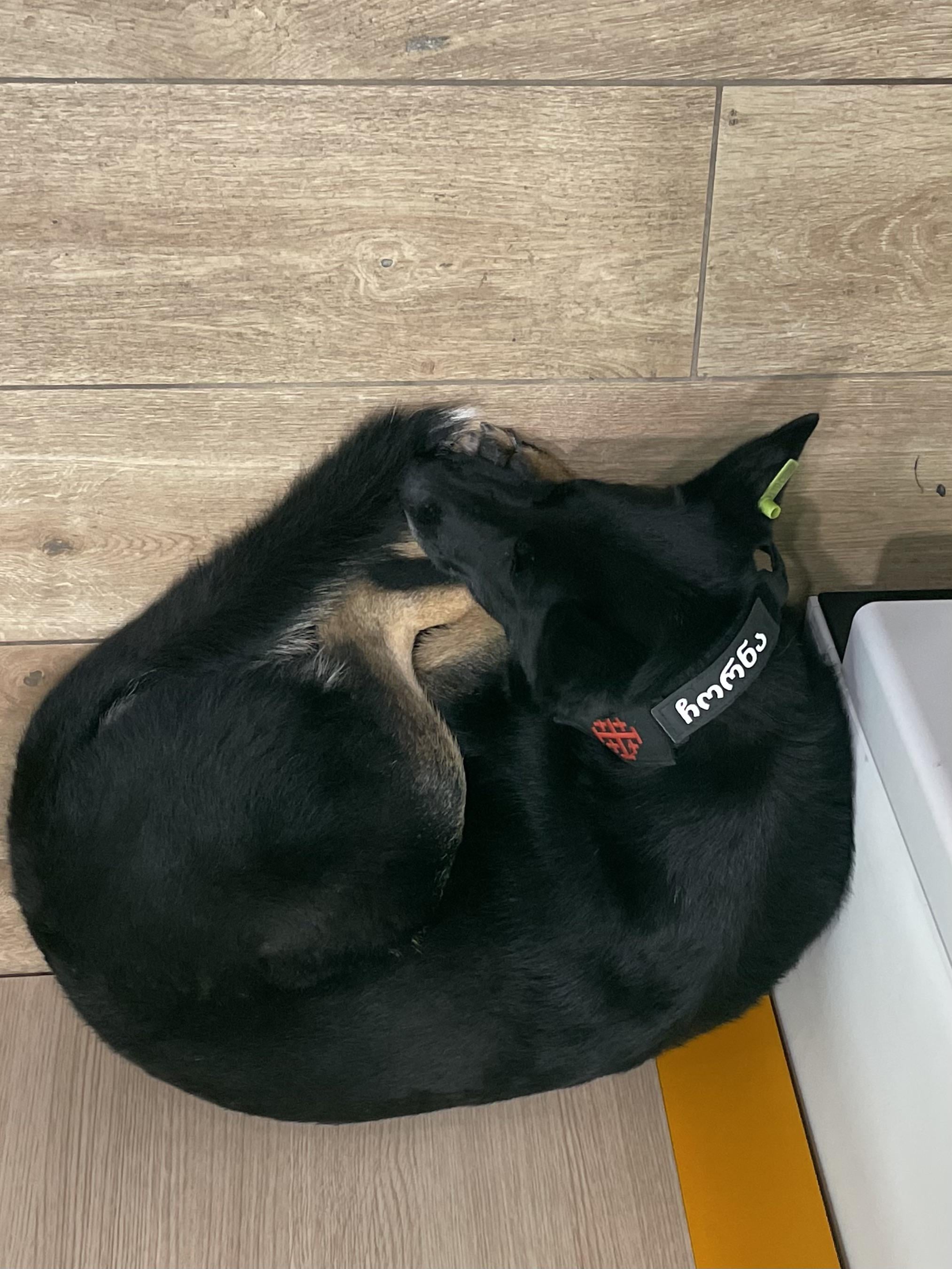 It translates as blackie, because it’s a black dog. Very creative, I know 😂😂