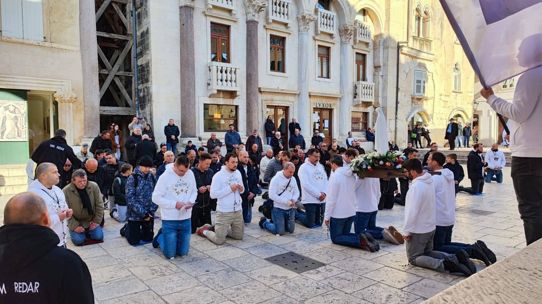 Then he closed the disco and opened his soul to God. Last year, a new life devoted to faith led him to the Warriors of Mary, the Croatian branch of the far-right male prayer community under the administration of the Catholic Church in Poland, who pray the rosary in a kneeling position on the Split Peristyle every first Saturday of the month. Along with the attack on the LGBT community, one of the main wishes of this organization is the prohibition of abortion and the Catholic supervision of women’s bodies.