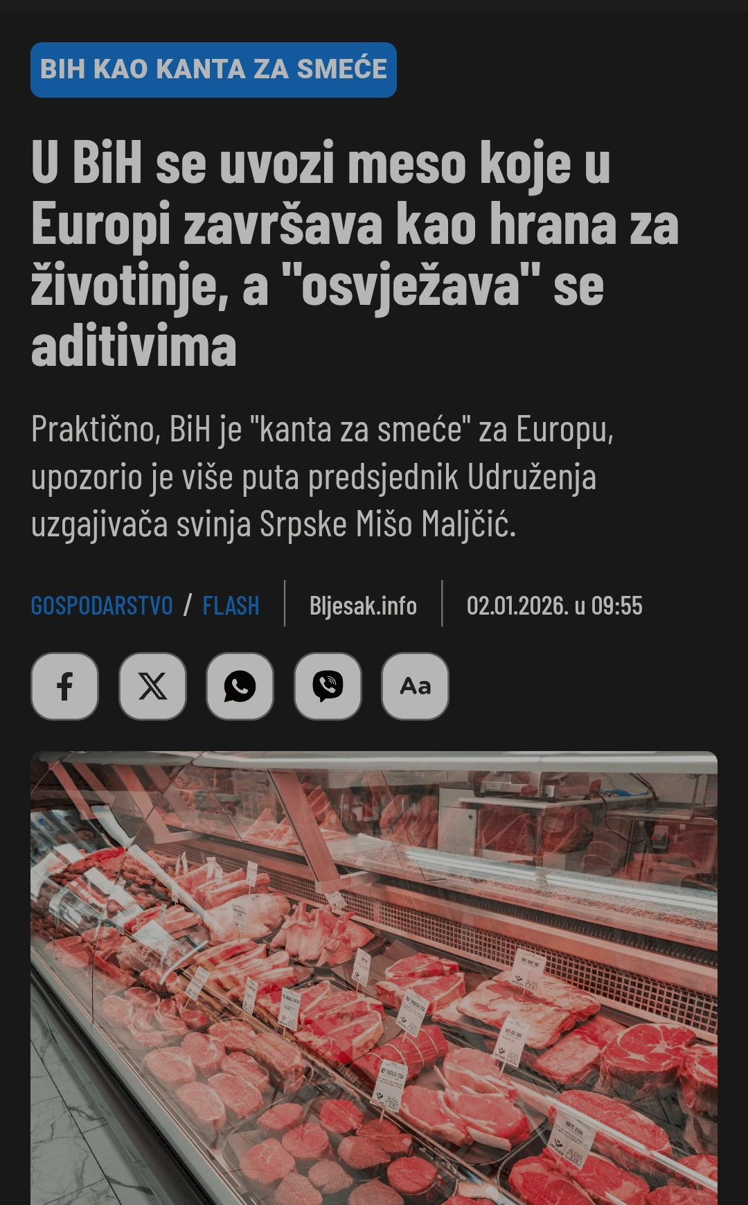 Ma de nije nista strasno, i nije nista novo radi se vec 15tak godina, duboko smrznuto meso iz argentine i brazila doduse starot destinama godina al potpuno ok 😀 misljeno vise za preradu u kobasice i slicno al eto zavrsi i kao svjeze u mesnici 😀 ugl nije stetno problem samo sto neko u mesnici dobrooo naplacuje