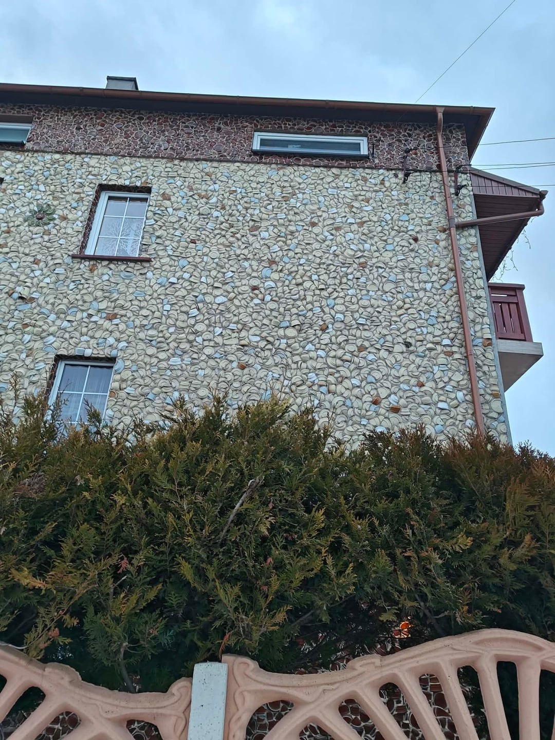Other houses from this era I’ve seen use pebbly type stone, small tile and even glass mixed into the concrete when it was poured and set.