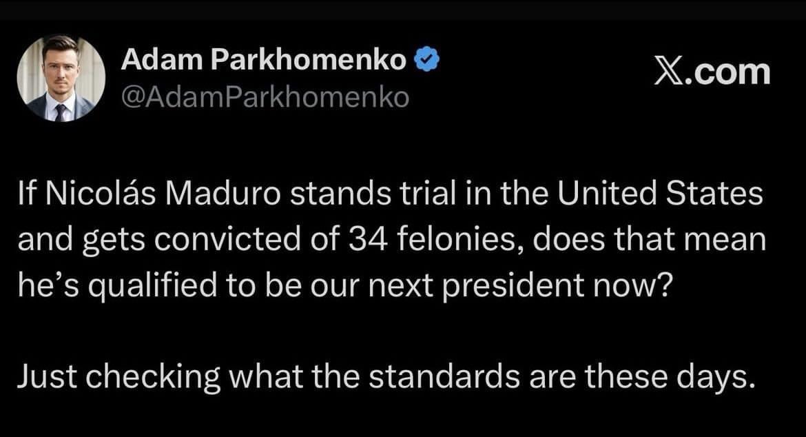 It’s unlikely to happen because there’s zero chance he’s getting a fair trial in the third world dictatorship that is the USA, but I really want Maduro to be found not guilty on all charges just for the absolute shitshow that would follow.