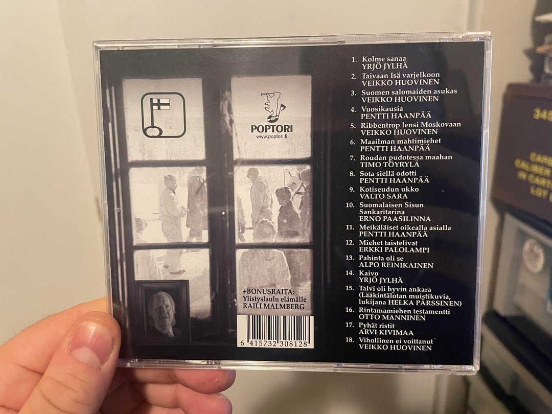 I found this CD at a gas station outside of Rovaniemi and thought it looked intriguing, assuming it was related to the Winter or Continuation Wars. So I bought it.