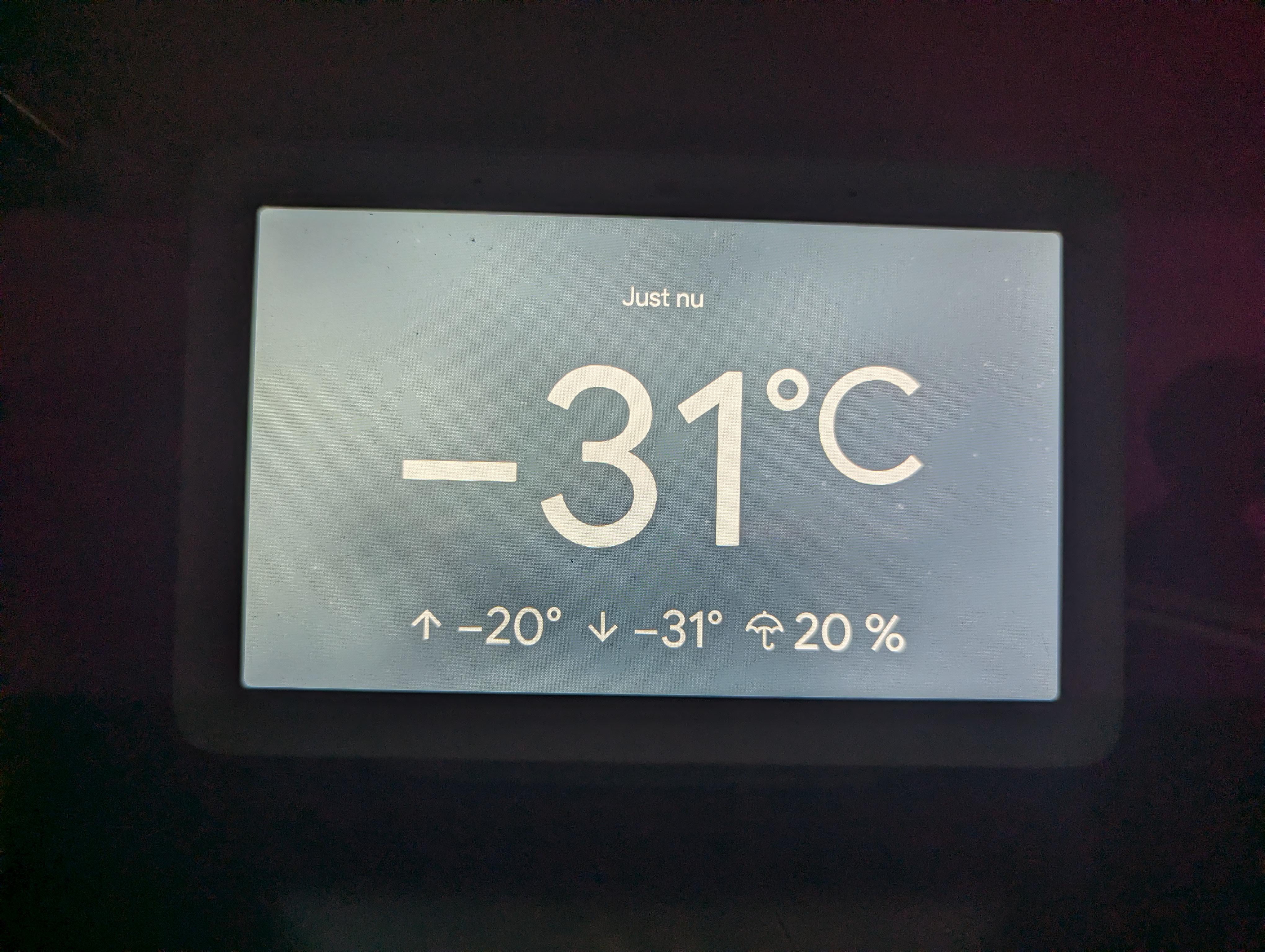 -5 °C, molnigt, snö på marken som för ovanlighetens skull verkar bli liggande några dagar istället för att omedelbart bli slask.