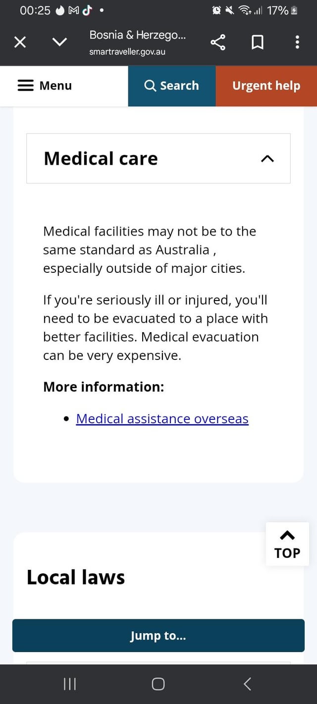 Australia: They warn of the poor quality of health care institutions, plus a note that evacuation may be necessary, which is very expensive