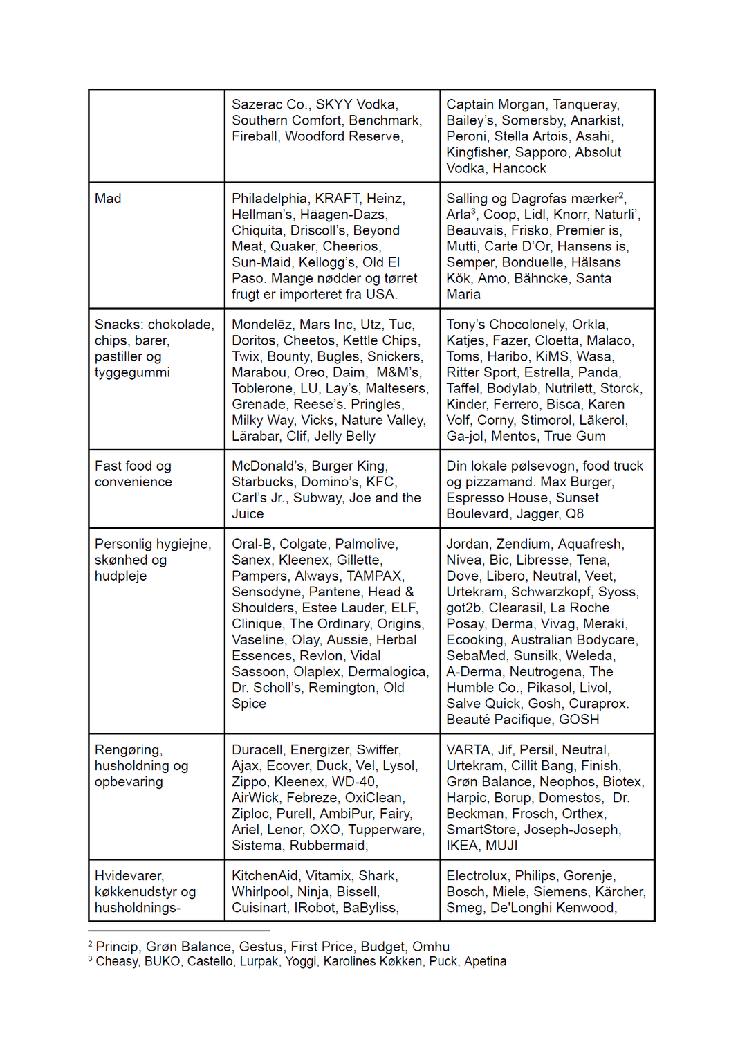 Under snacks kunne man tilføje Pringles som amerikansk (hører under Mars som er på listen, men ingen har styr på ejerskab af brands).