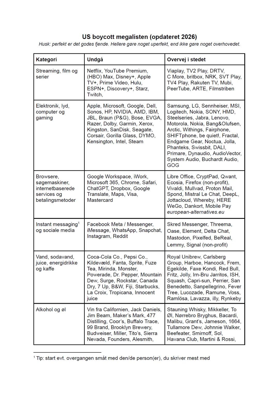 Jeg er lidt ked af at iFixit står på listen. Ja, jeg har set disclaimeren, men er det fornuftigt at boycutte et brand som kæmper en anden vigtig kamp (right to repair), som man desuden ikke behøver købe noget fra, for at støtte?
