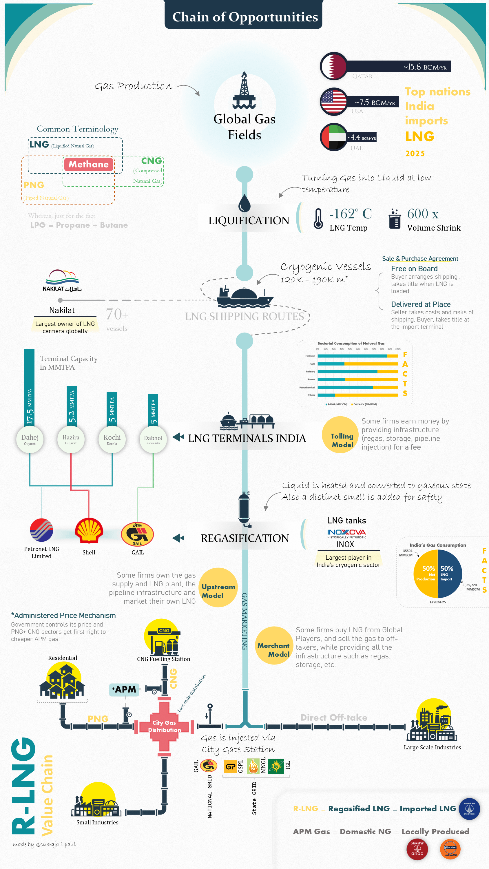 This is a personal curiosity project where I tried to map the entire R-LNG value chain of India in one visual — covering imports, terminals, CGD, and industrial offtake.