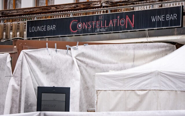 This photograph shows the entrance of the Le Constellation bar, where a fire ripped through the venue during New Year’s celebrations in the Alpine ski resort town of Crans-Montana, killing around 40 people and injuring more than 100 others, in Crans-Montana, Switzerland, on January 2, 2026. (MAXIME SCHMID / AFP)