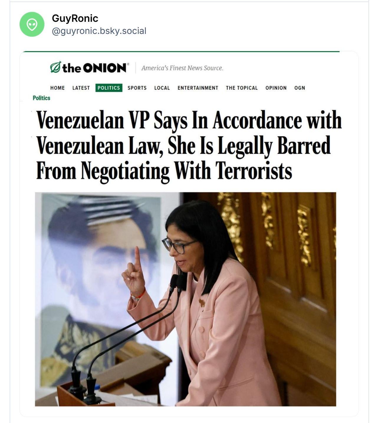 3. I’m really waiting to see how this plays out over the next few days. It seems unlikely to me Venezuela will just agree to become an asset stripped vassal state, and that is going to put the administration in a weird place when they have to invade a country they are claiming they are in control of but not at war with.
