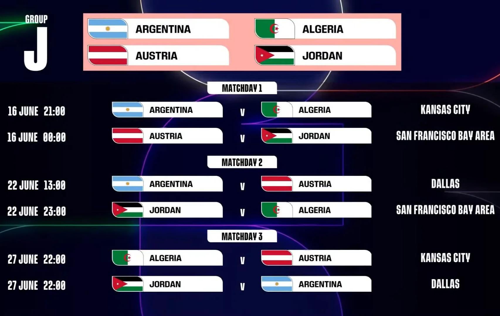 11. I wouldn’t underestimate Jordan, they made it to the final of the arab cup, to me they’re on an equal level as Algeria. Argentina should top the group, but could be a tight fight for 2nd and 3rd place between the other 3. Also maybe Argentinia slips again like they did at last world cup against Saudi-Arabia, and the team who manages to do that upset has the upper hand.