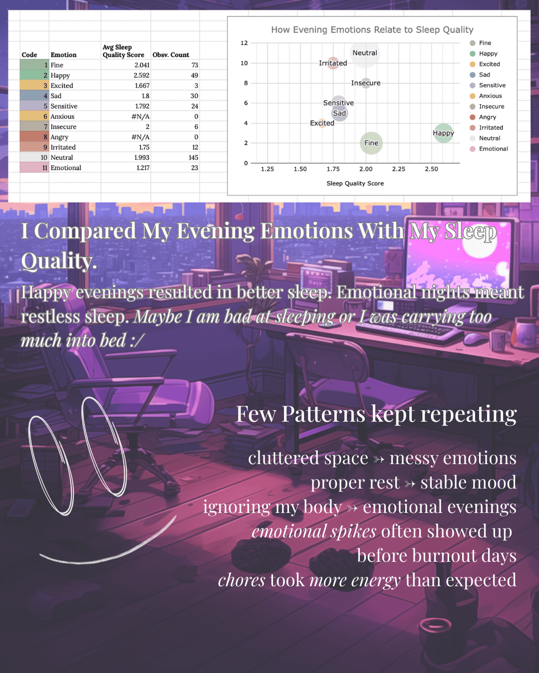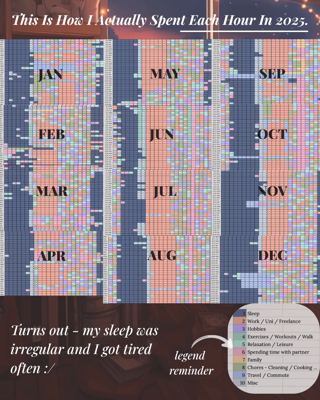 At the end of the year, seeing the highlights of each day all together was honestly emotional. I realised that even though I kept telling myself I “didn’t achieve anything” in 2025, I was actually… okay most days. Mostly neutral. And that realisation made my New Year’s Eve a lot better — I was being way harsher on myself than the data showed.