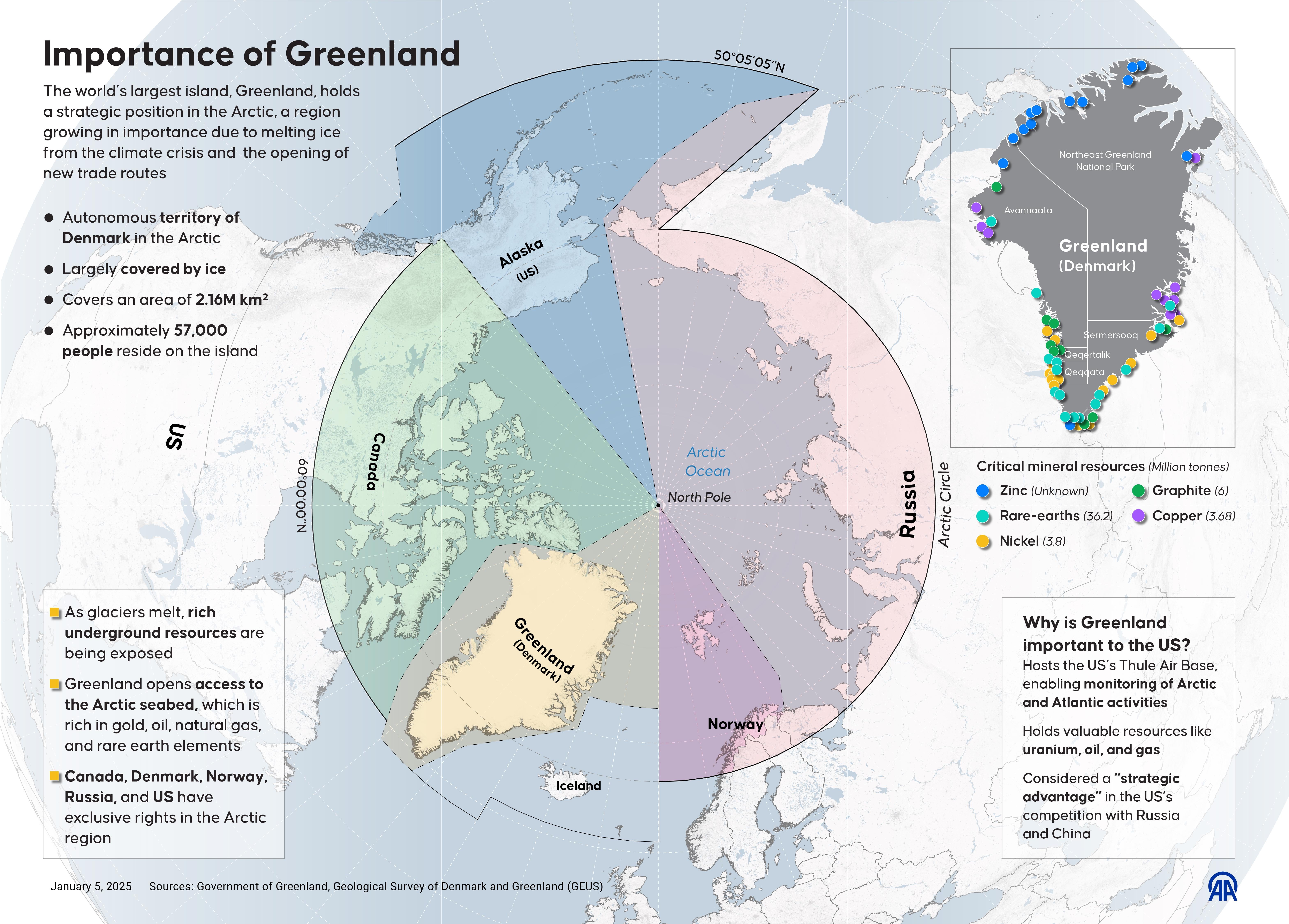 The world’s largest island, Greenland, holds a strategic position in the Arctic, a region growing in importance due to melting ice from the climate crisis and the opening of new trade routes.