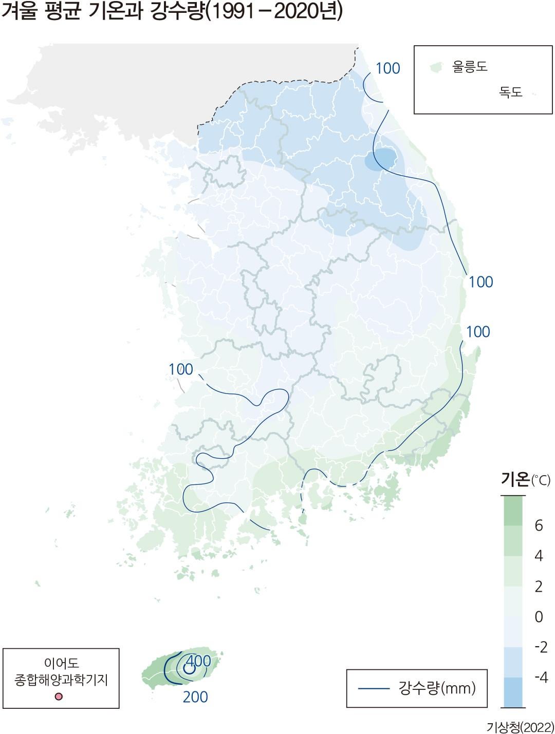 5. Winter Mean Temperature and Precipitation (1991–2020)