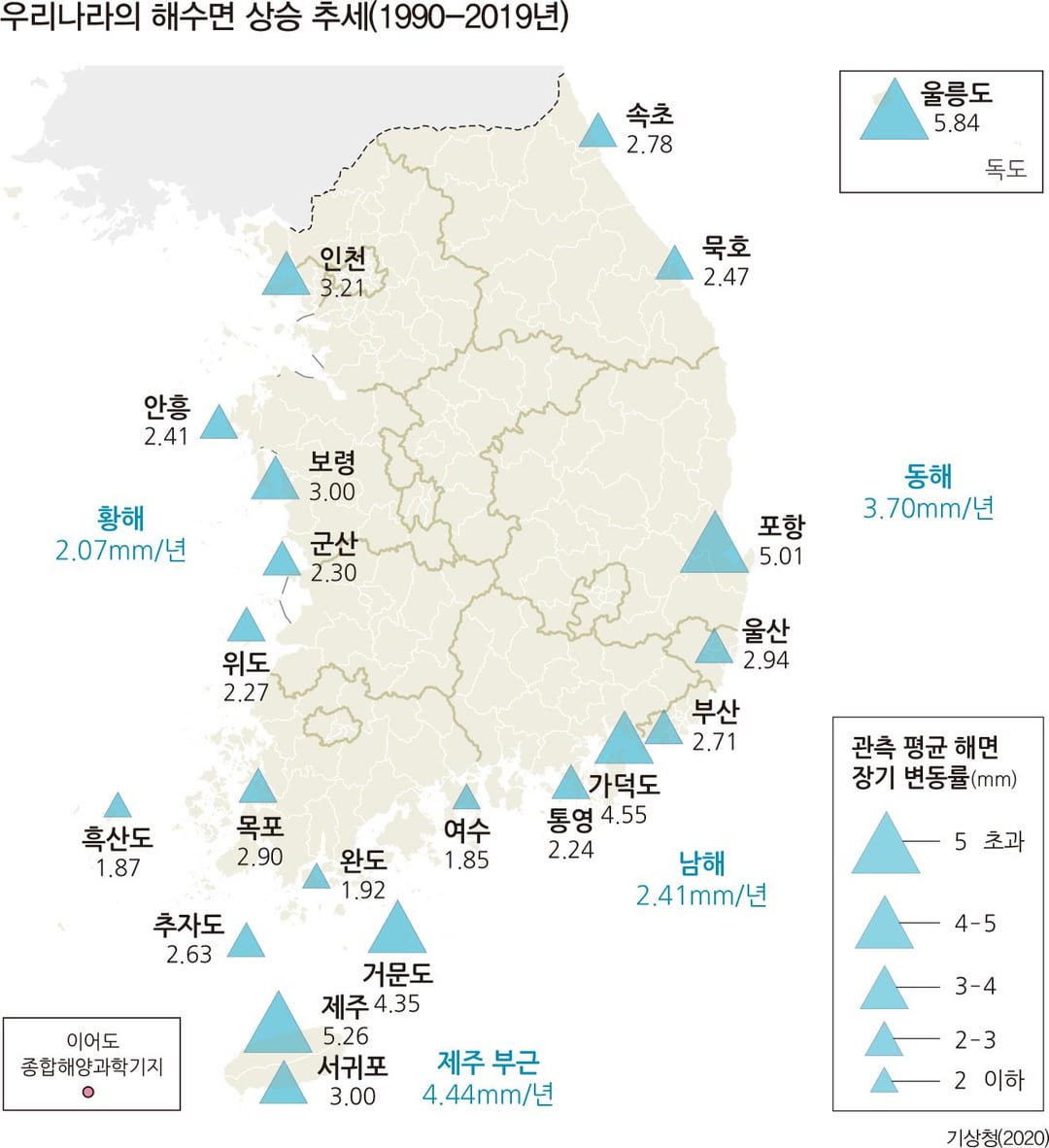 5. Observed Sea Level Rise Trends around the Korean Peninsula (1990~2019)