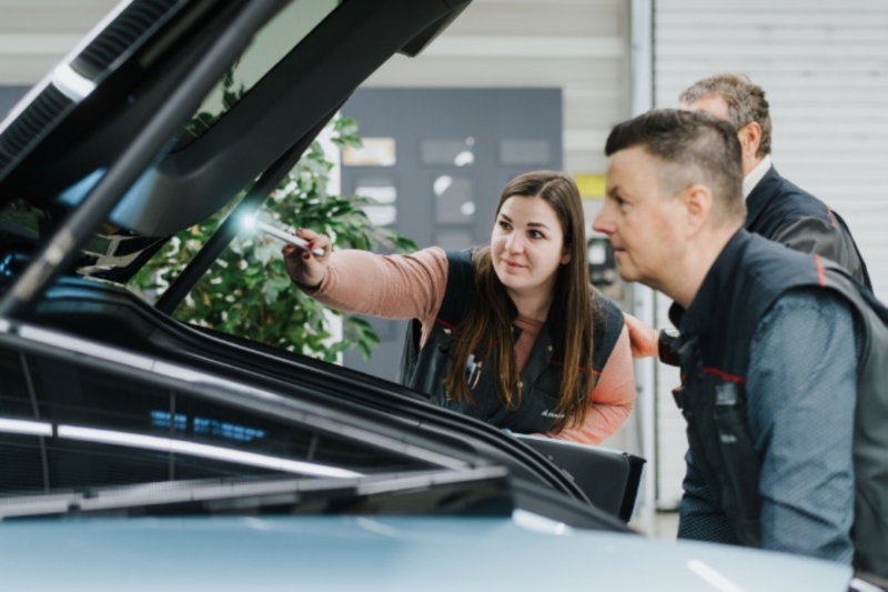 Chinese and Austrian teams collaborate on the 2026 Xpeng P7+ at the Austrian production facility.