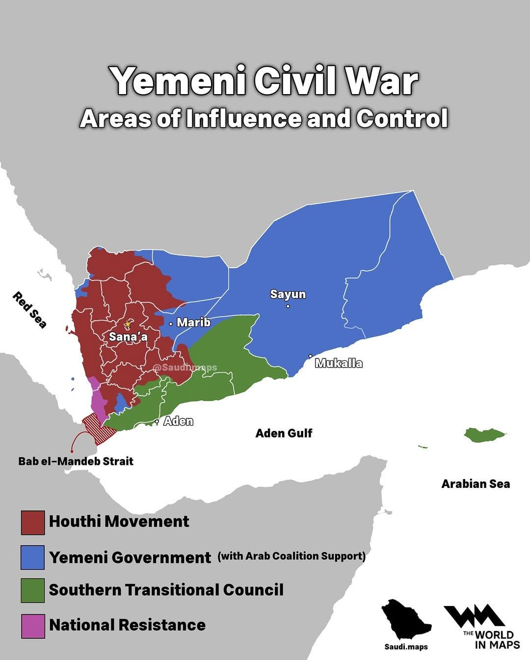 This map is a few weeks out of date, the STC swept the National gov. away & took all that territory in just a few days, the the national gov. surrendered to them. So only the Greeb & Red areas are a thing now & the blue is now green