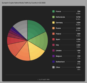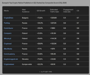 Search engines deliver trusted, on-demand answers for folks new to blockchain, which acts like a secure digital ledger for tracking crypto trades. Outset’s data shows this channel held steady at 46% for “crypto-native” sites, those built just for digital assets news. Meanwhile, discovery via platforms like Google Discover or social referrals narrowed, hit by algorithm tweaks and Europe’s MiCA rules that tightened content rules to fight scams.​