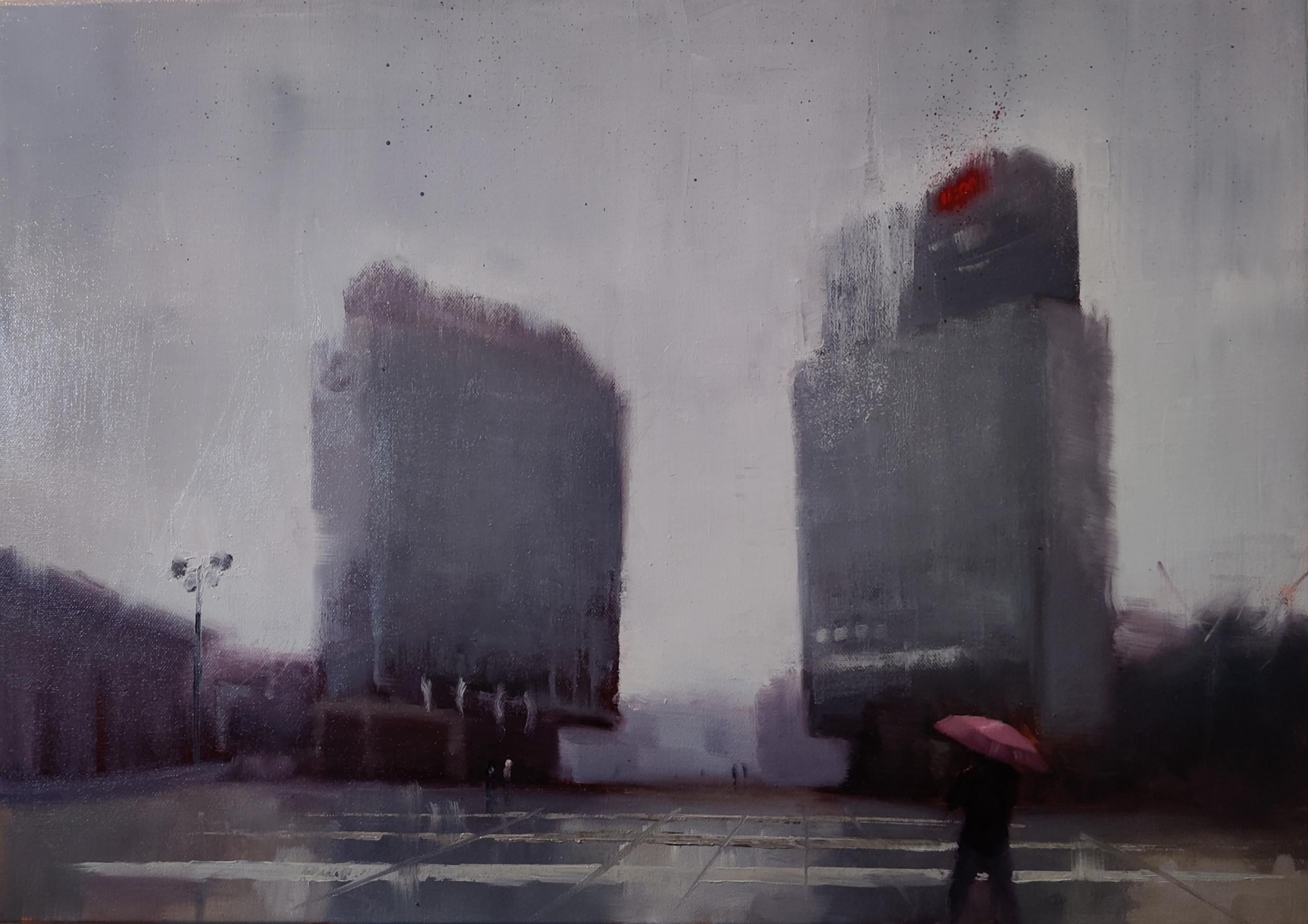 Finished (?) this larger 50 x 70cm painting today of Trg Republike! Went with the foggier view of it…