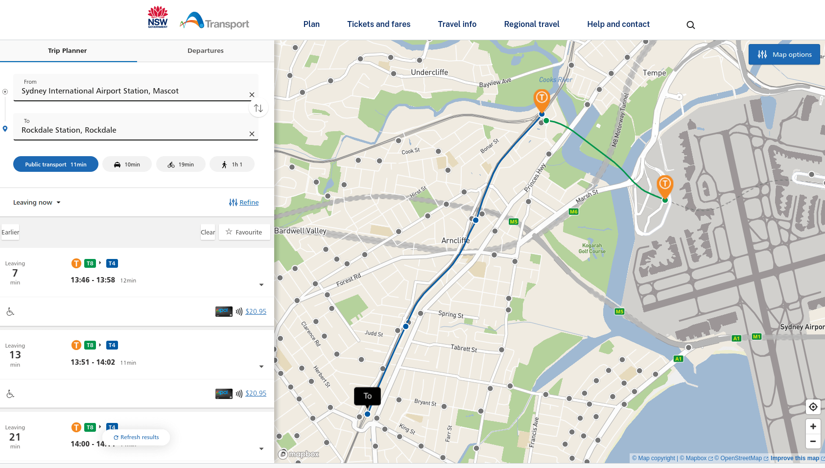 Catching a train from SYD International Airport to Rockdale Station costs $20.95: https://i.imgur.com/MrZmSvY.png