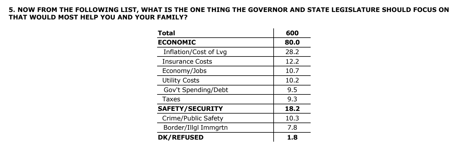 The Alabama Poll recently surveyed 600 likely Republican primary voters asking what the governor and state lawmakers should focus on in the new year. A full 80% of the responses were related to the economy, including 28.2% that said inflation and cost of living were of particular concern. More than 12% said insurance and utility costs.
