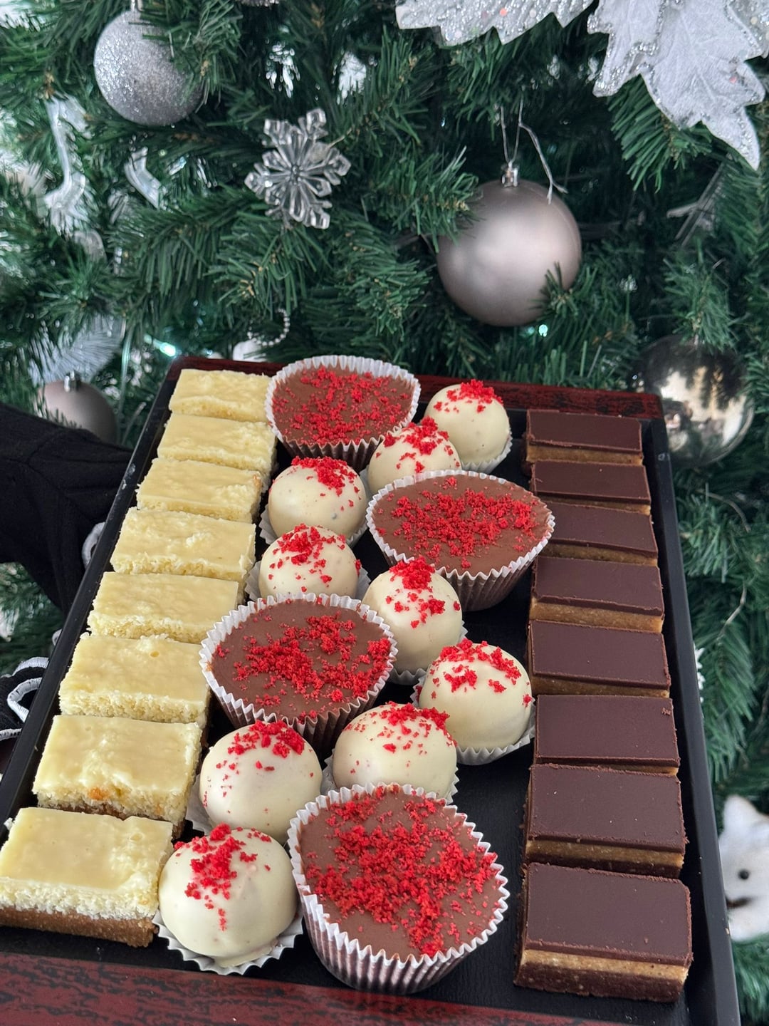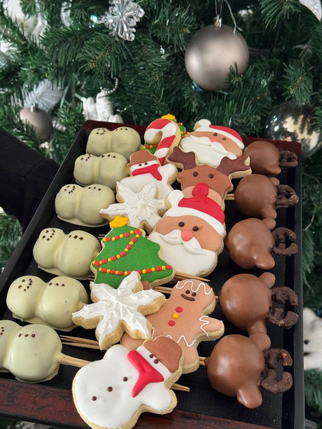 Snowman pops, sugar cookies with royal icing, chocolate reindeer, white bajadera with coconut, red velvet balls with white chocolate, raspberry baskets with plasma and regular bajadera If anyone is interested in the recipes, feel free to contact us 💕