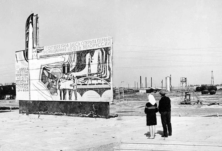Stele “To the Discoverers of Belarusian Oil” in Soviet times. Photo: budakosh.by