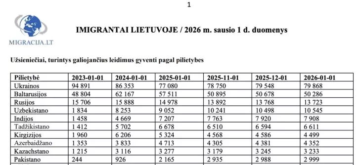 As of January 1, 2025, there were 57,511 Belarusian citizens with all types of residence permits in Lithuania. Within a year, their number decreased by 7,225 people. As of January 1, 2026, 50,286 Belarusians with all types of residence permits remain in Lithuania.