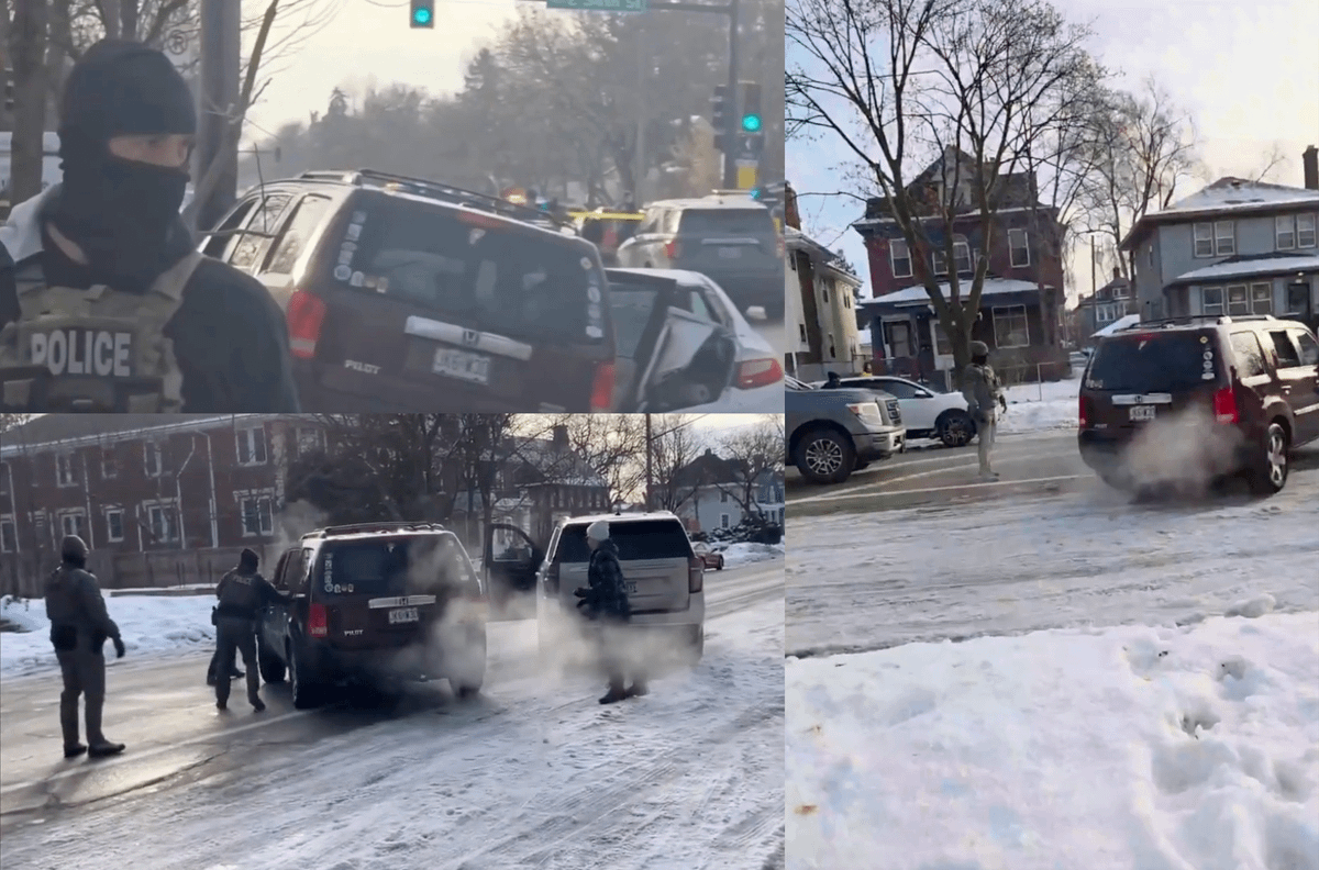 You can clearly see the woman giving the ICE vehicles right of way, waving them around and right before she is murdered, another ICE SUV drives by without issue. Only the second truck, with more masked men in it, stops for no reason and an alleged “officer” makes an attempt to illegally enter her vehicle. ICE does not have the jurisdiction to make traffic stops, and the woman is clearly not preventing them from leaving.