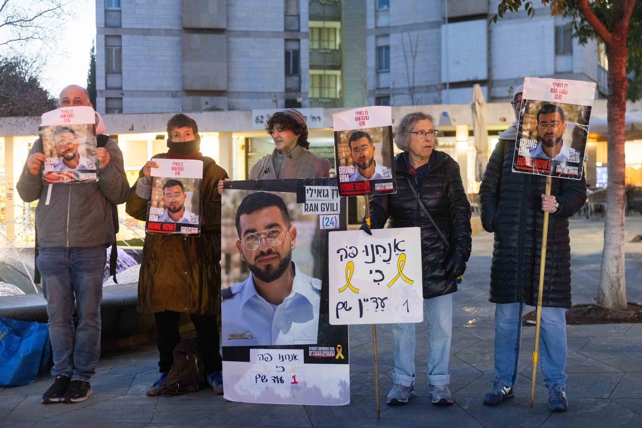 People call for the return of slain hostage Ran Gvili near the Prime Minister’s Residence in Jerusalem, January 5, 2026. (Chaim Goldberg/Flash90)