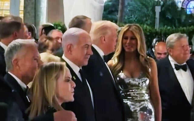 Prime Minister Benjamin Netanyahu stands next to US President Donald Trump and First Lady Melania Trump at the president’s New Year’s Eve party at his Mar-a-Lago resort in Palm Beach, Florida, on January 1, 2026. (Screenshot: Instagram, used in accordance with Clause 27a of the Copyright Law)