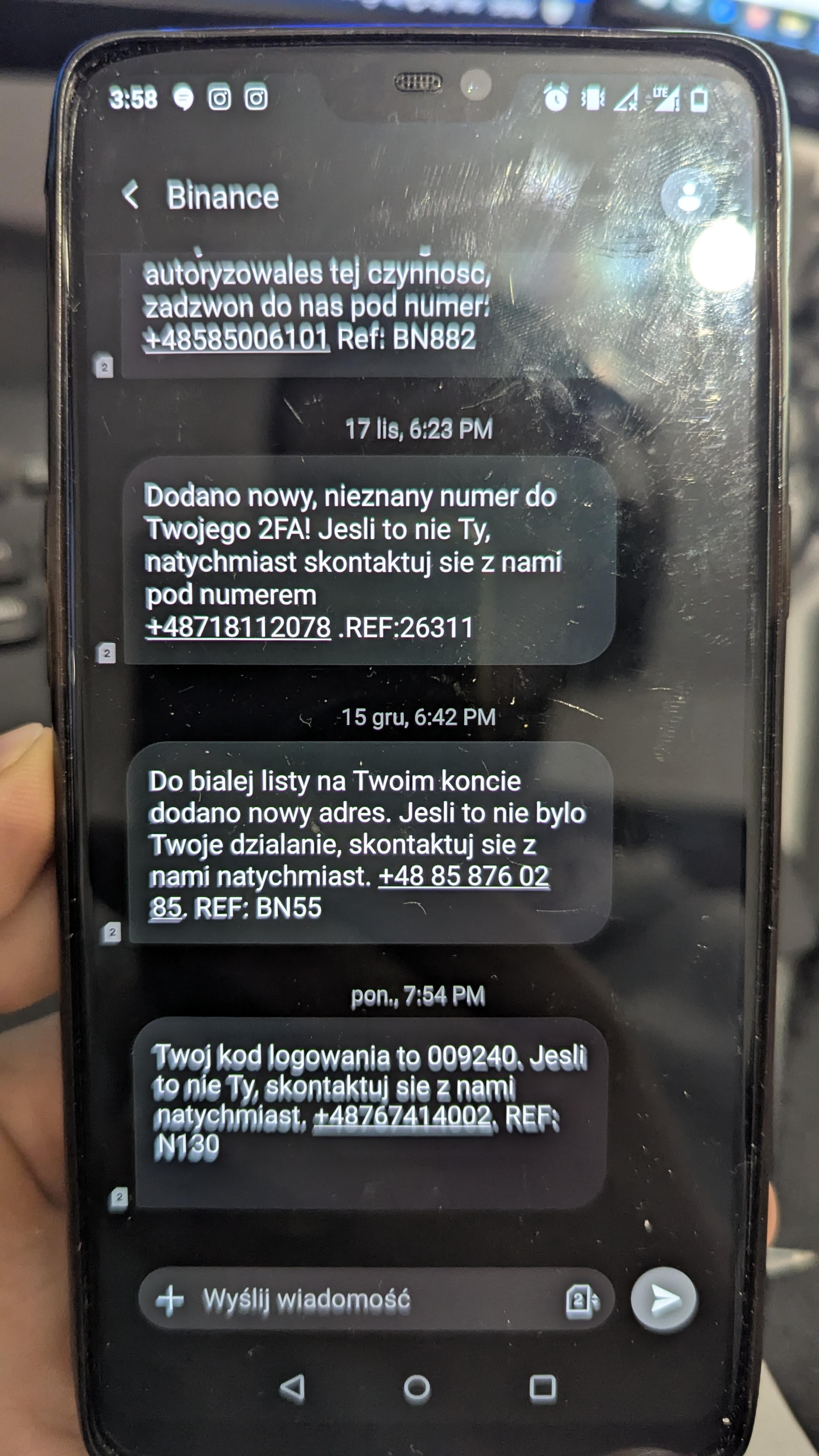 To jest naprawde meczace. Na zadny scam jeszcze sie nie dalam przez cale zycie, ale ten binance nie raz przez chwile zestresowal. Oczywiscie w zadne linki czy numery sie nie klika, ale czlowiek pare razy musial sie zalogowac do aplikacji i upewnic. Eh.